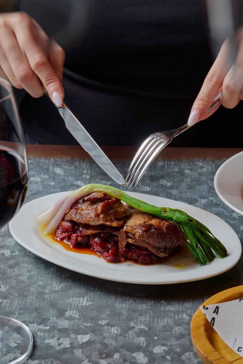 Pica Pica的焦糖皮奎洛辣椒烤羊颈肉与焦香大葱。图片:Pica Pica提供