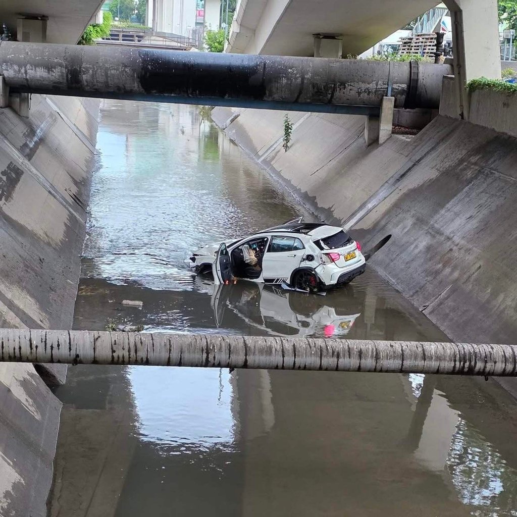 香港排水渠发现被弃奔驰事故车 | 南华早报