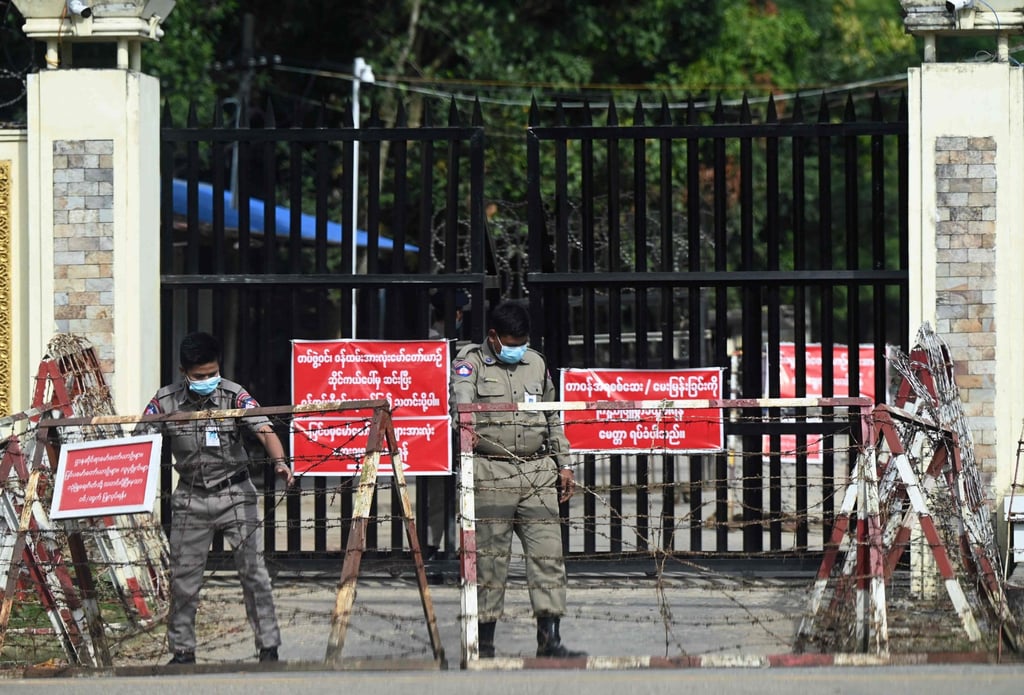 缅甸仰光永盛监狱外的安保人员。照片:法新社