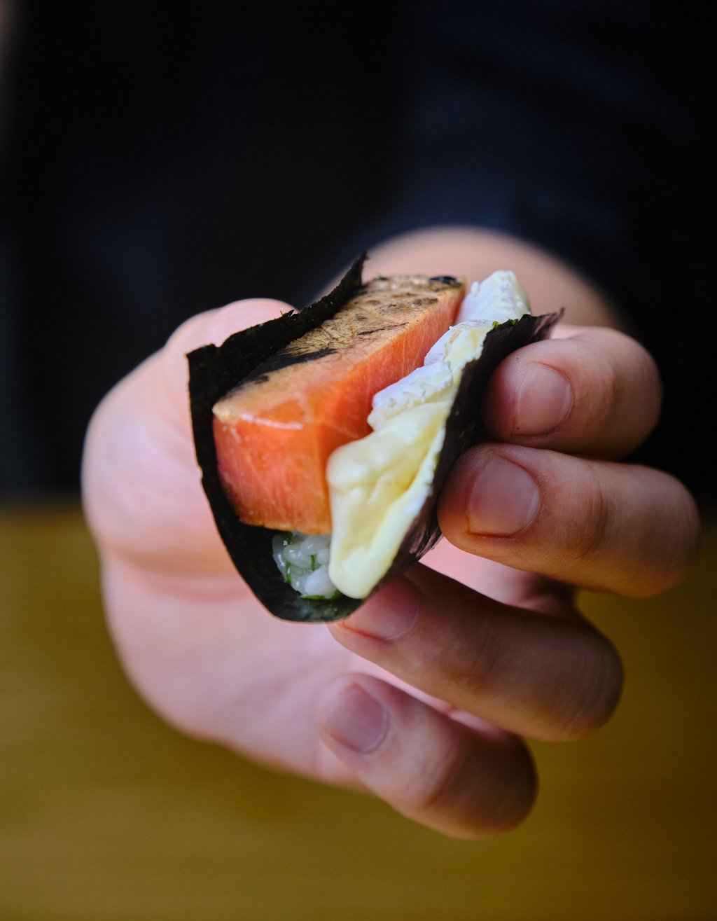 鲁库餐厅一款配有机卡芒贝尔奶酪的寿司卷。图片:鲁库餐厅提供