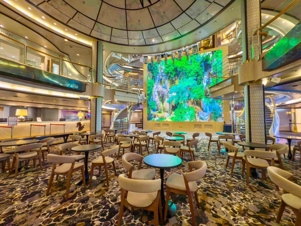 邮轮主大厅常举办莎莎舞之夜、卡拉OK等活动。
