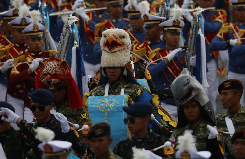 周一,印尼军队在巴黎举行的巴士底日庆祝活动中进行阅兵。照片:EPA