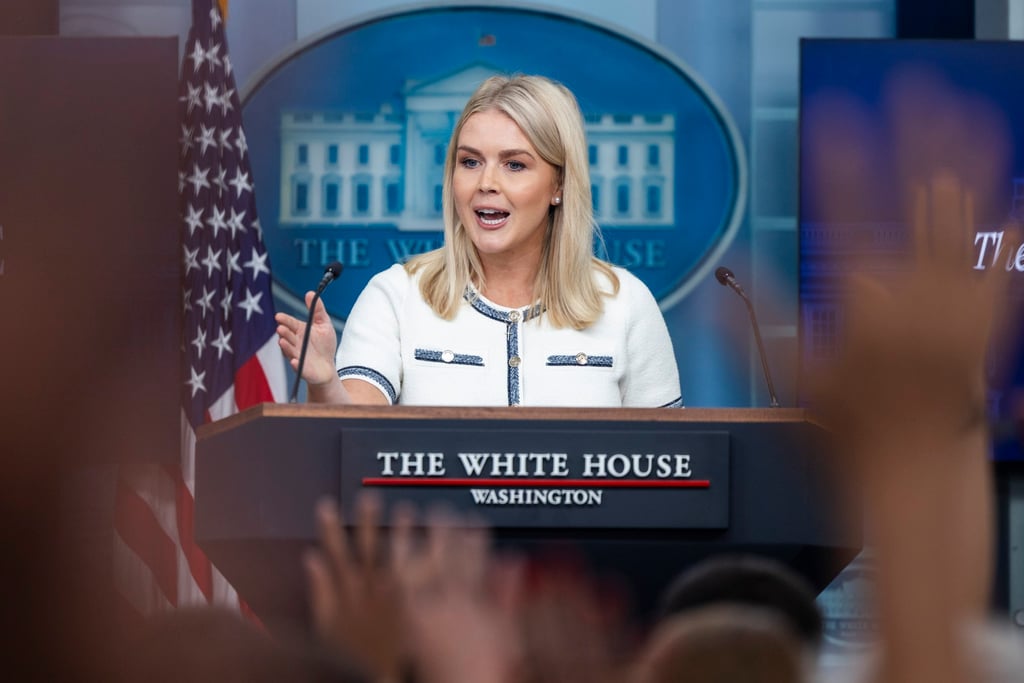 白宫新闻秘书卡罗琳·莱维特周四在华盛顿向记者发表讲话。图片来源:EPA