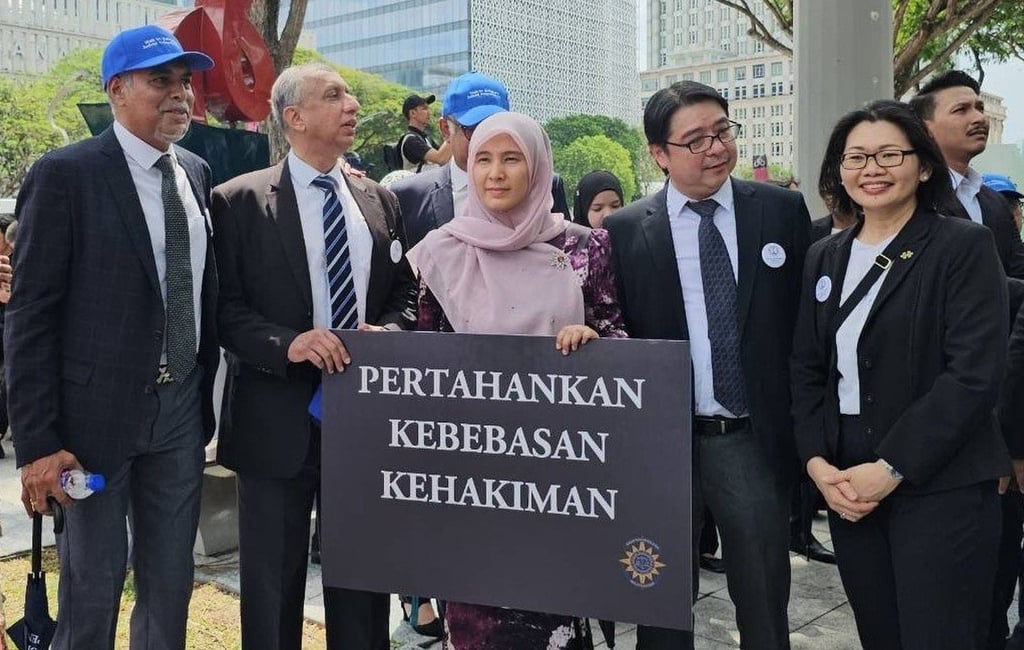 公正党副主席努鲁·伊莎(中)参加周一律师公会争取司法独立的游行。图片来源:X/n_izzah