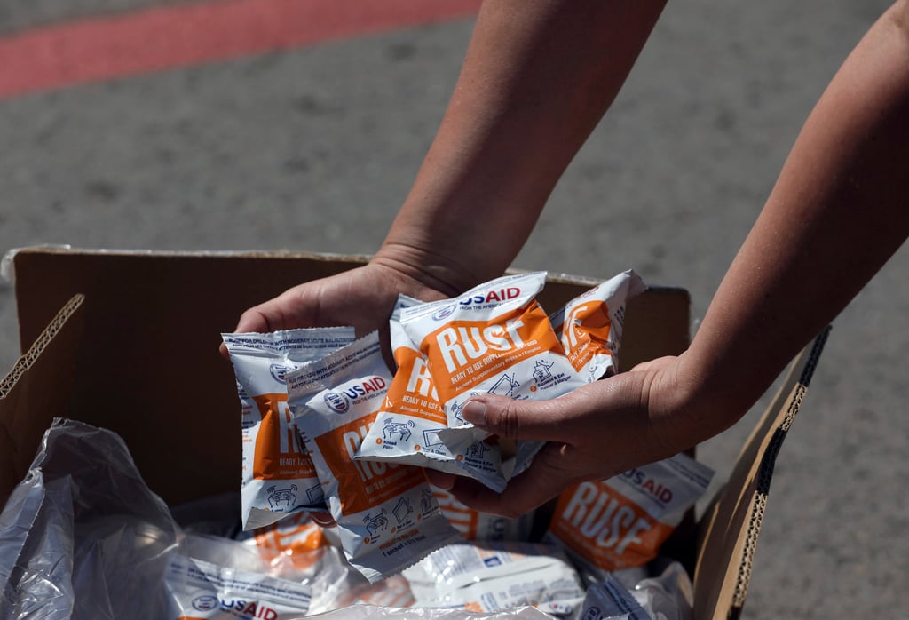 美国国际开发署(USAID)的"即食"食品包装。档案照片:美联社