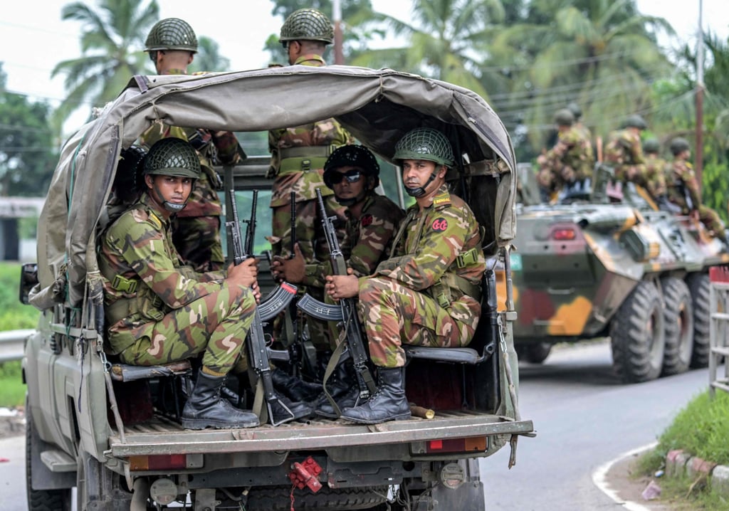 周四孟加拉国军人在戈巴尔甘尼街道巡逻。图片来源:法新社