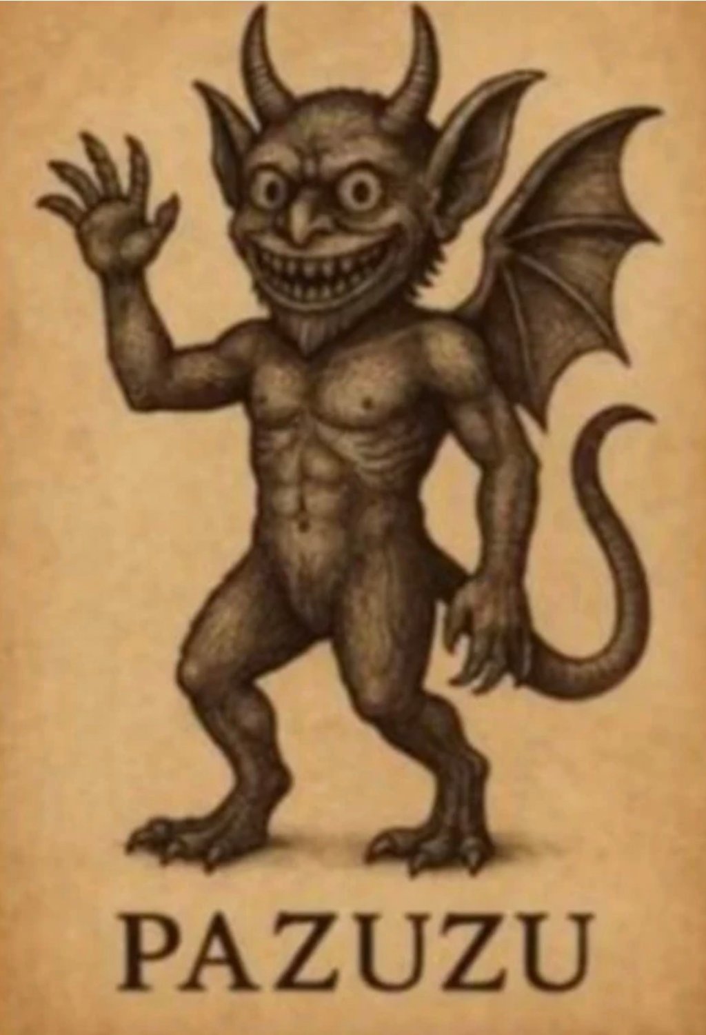 近期正是这个独特造型引发了阴谋论。海外社交媒体上有用户将Labubu与源自公元前一千年美索不达米亚传说恶魔帕祖祖相联系。帕祖祖被描绘为狮面犬首、双目暴突的形象,网络流传的漫画显示这个露出尖牙微笑的恶魔与Labubu极为相似。