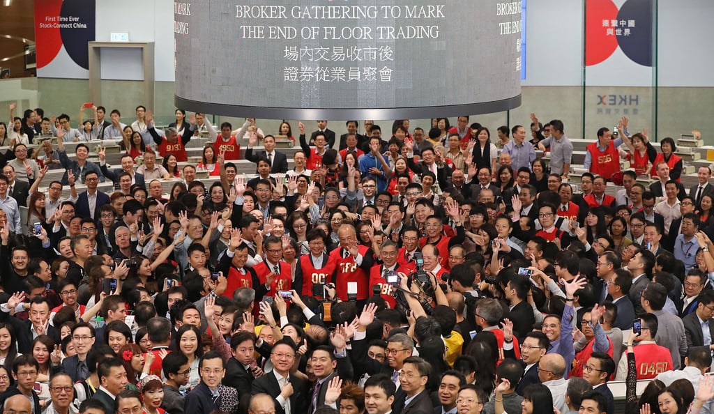 香港股市的最后一天场内交易是在2017年10月27日。此后的交易完全通过无纸化数字交易进行。照片:Edward Wong