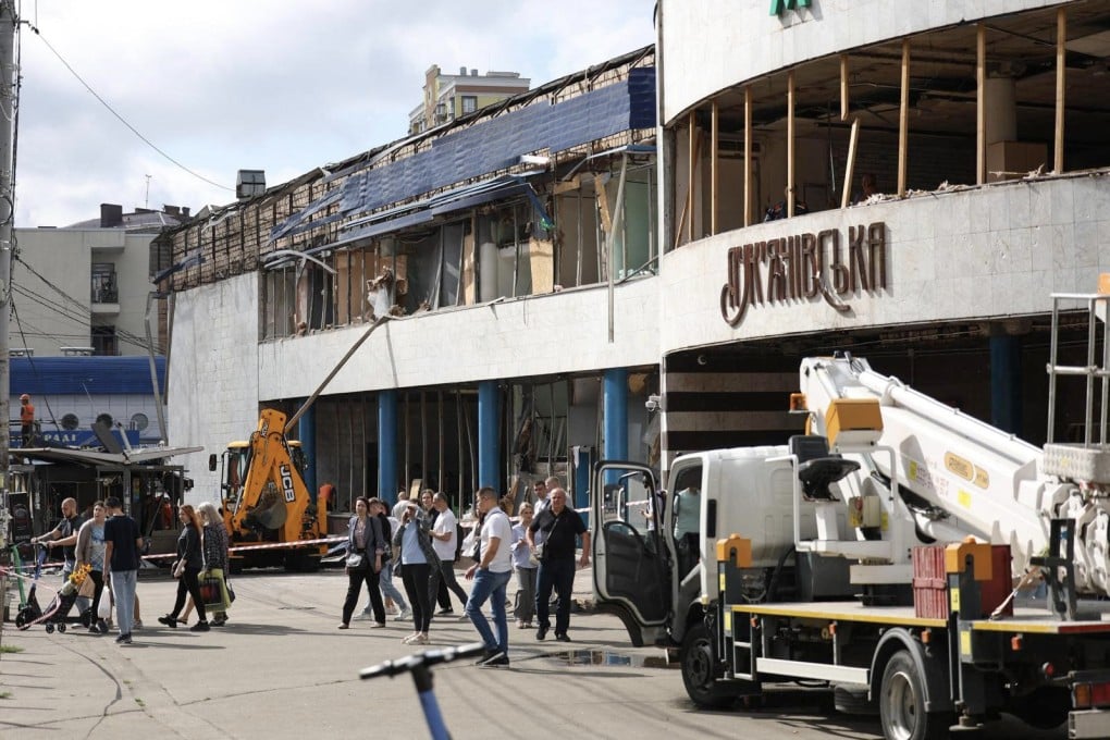 一架无人机击中了基辅舍甫琴基夫区地铁站入口,当时民众正在此处避难。