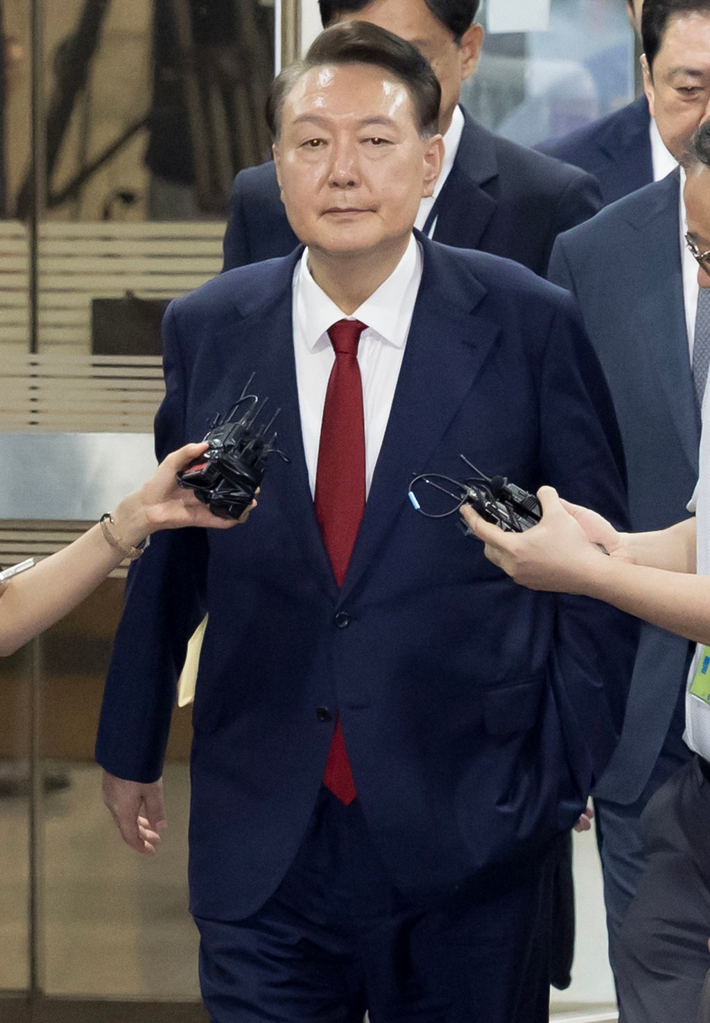 7月9日,韩国前总统尹锡悦在首尔参加听证会后的画面。图片来源:Newsis/新华社