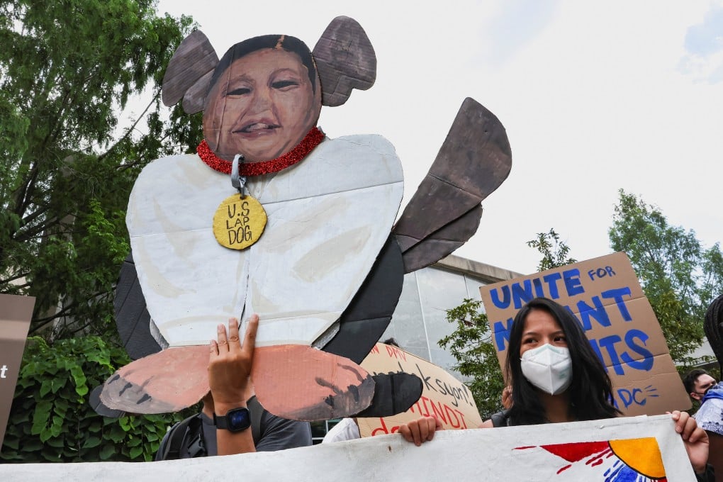 示威者指责总统忽视紧急移民问题,包括菲律宾工人遭遇的突袭、拘留和驱逐,却抽身讨好美国国防官员和商界领袖。