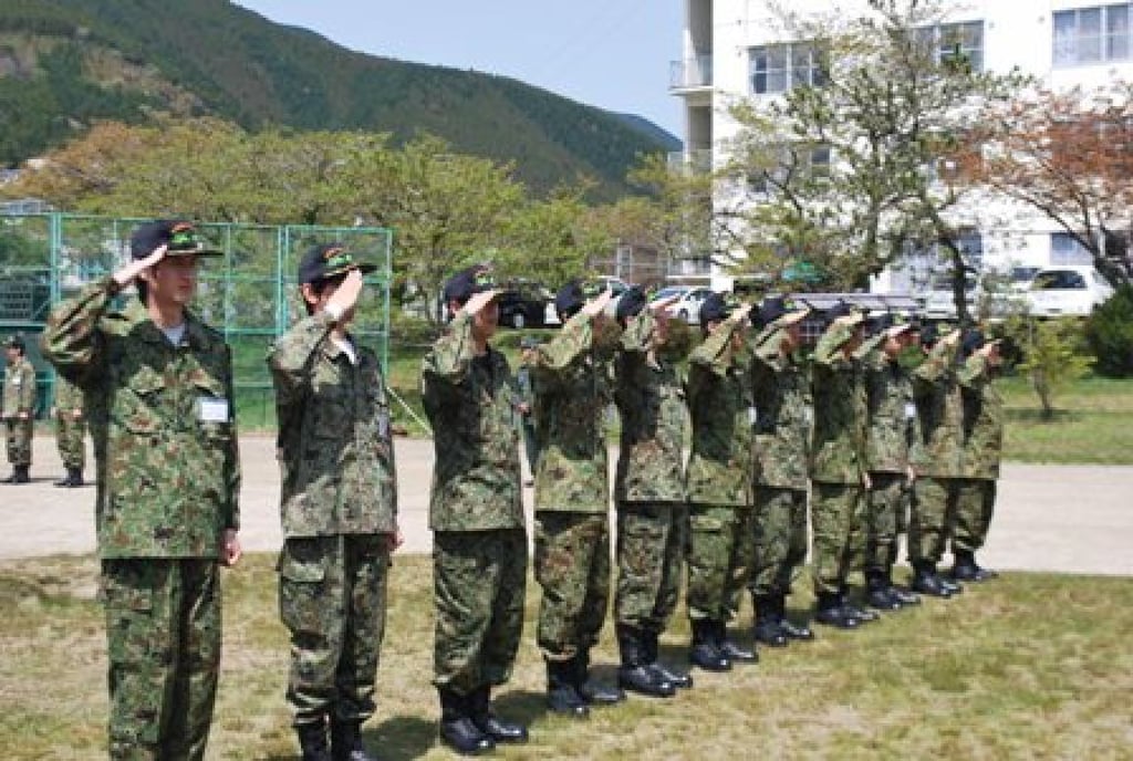 新兵在自卫队"入伍体验"中进行班排训练,同步行动与服从命令是核心训练要素。图片来源:日本自卫队