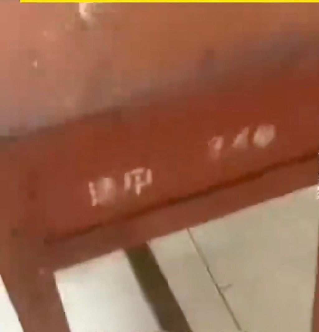 这张旧课桌上的汉字标记被沈先生一眼认出。图源:抖音