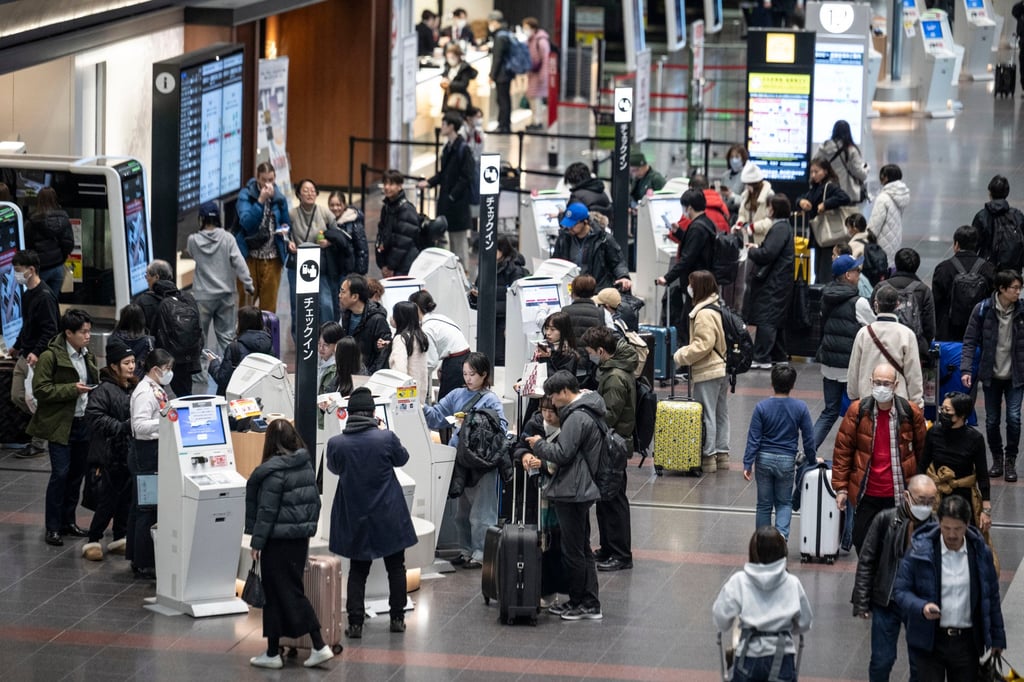 东京羽田机场出发大厅内等待办理登机手续的旅客。最新研究显示日本在国际旅行准备度上大幅落后于多个发达经济体。图片来源:法新社