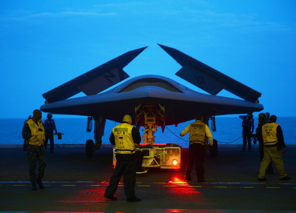 2013年,X-47B无人作战航空系统无人机在乔治·H·W·布什号航空母舰上。美国X-47B项目于十年前取消。照片:法新社