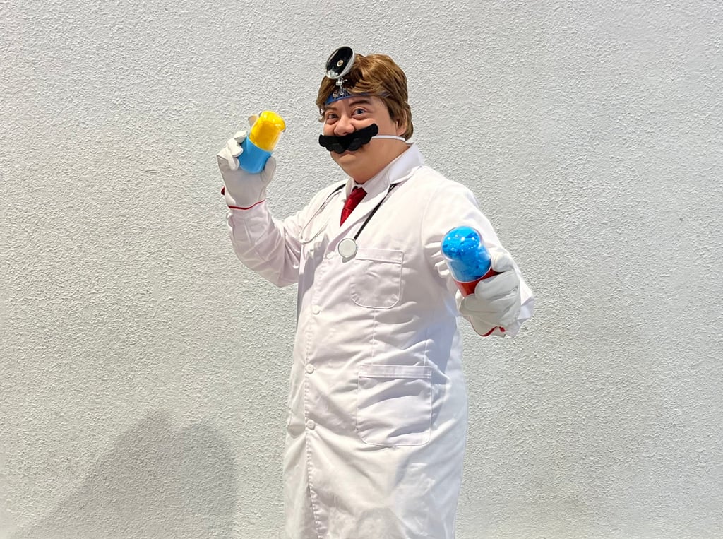 乔纳森·阮老师装扮成马里奥医生,这是他为期五天的展会中五套服装之一。照片:安布罗斯·李