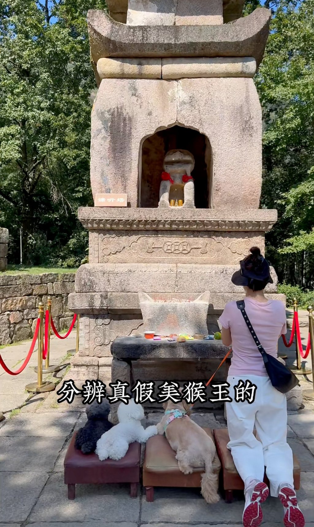一位女性跪在现场与她的狗一起,祈求祝福和动物的健康。照片:RedNote