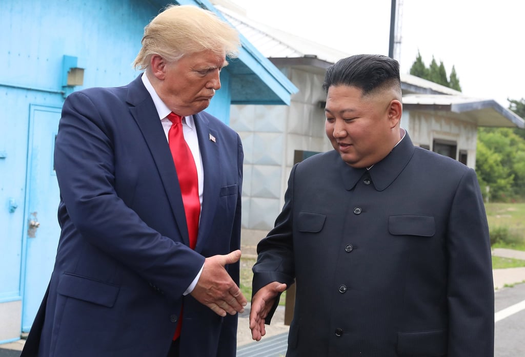 唐纳德·特朗普和金正恩于2019年6月30日在朝鲜和韩国之间的非军事区会面。照片:东亚日报/盖蒂图片社