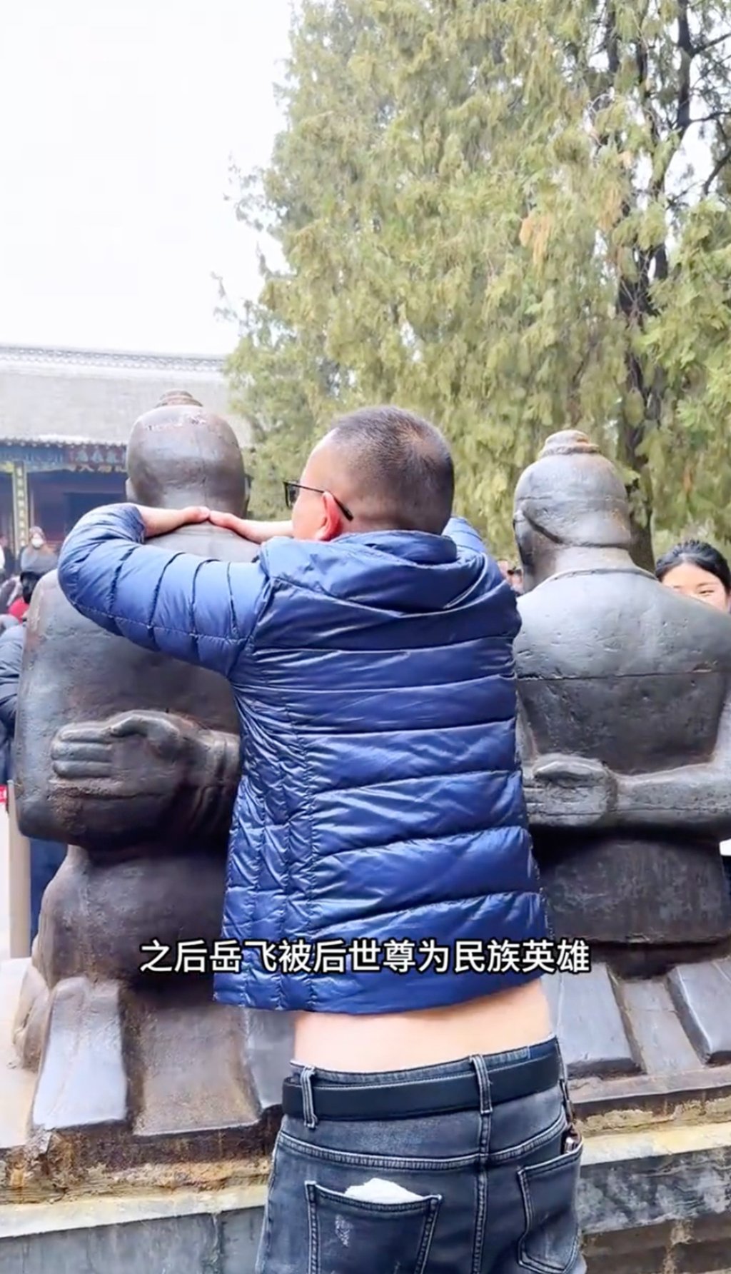 2023年1月,一名来自河南的男性游客愤怒不已,举起附近的铁棒攻击秦的雕像,口中高喊岳飞著名书法作品中的四个字,意为“还我河山。”