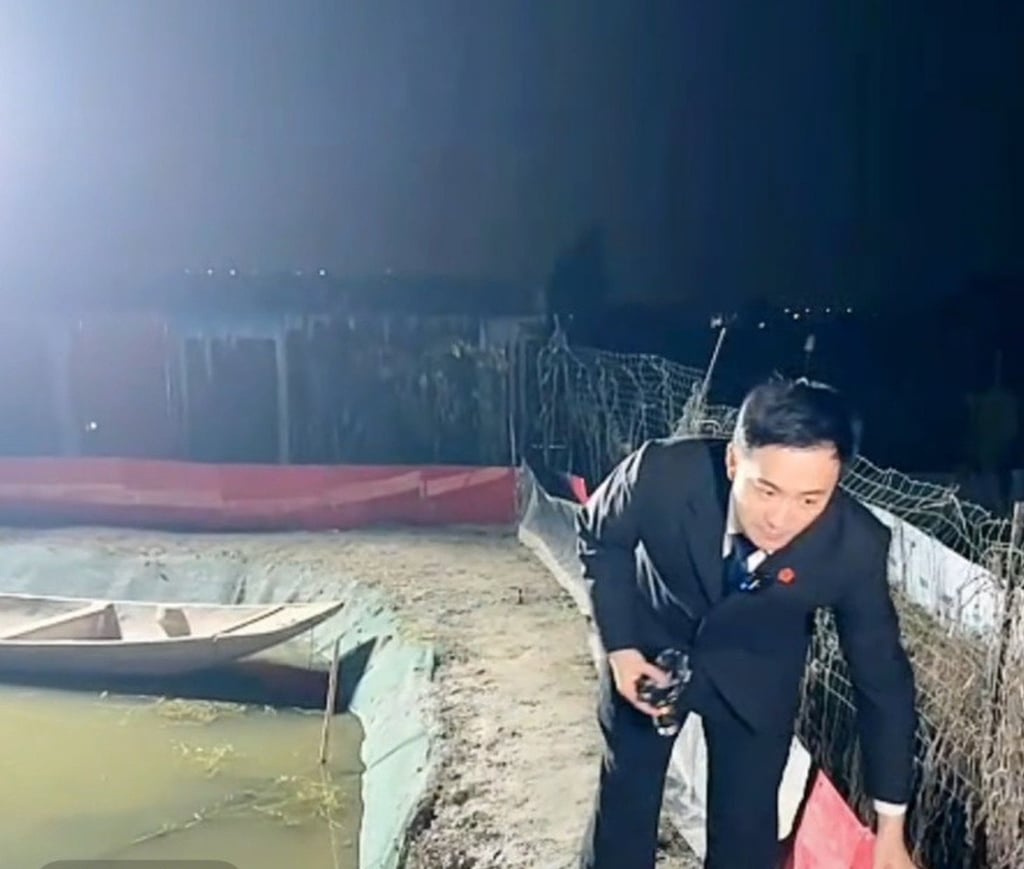 法院的一名代表在该家庭的蟹农场进行实地考察,以确认他们确实进行了破产申请。照片:提供