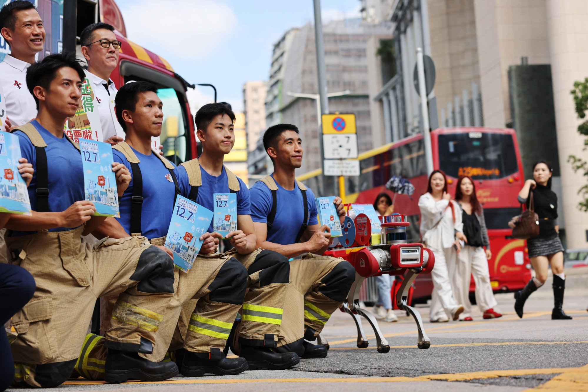 消防员与一只消防机器人狗呼吁选民在12月7日投票。照片:诺拉·谭