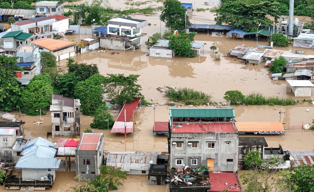一张航拍照片显示,周一在卡加延省图盖加劳市,因台风丰旺带来的大雨,河流泛滥导致房屋被淹。